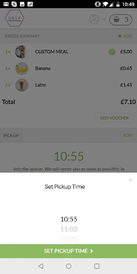 Pre-order coffee from two coffee bars on the 5th floor, select your pick-up time, pay online via the app and collect.