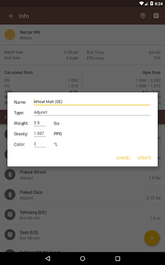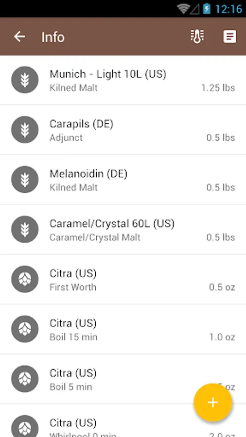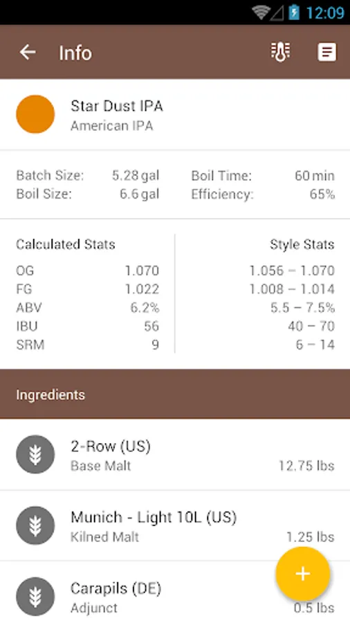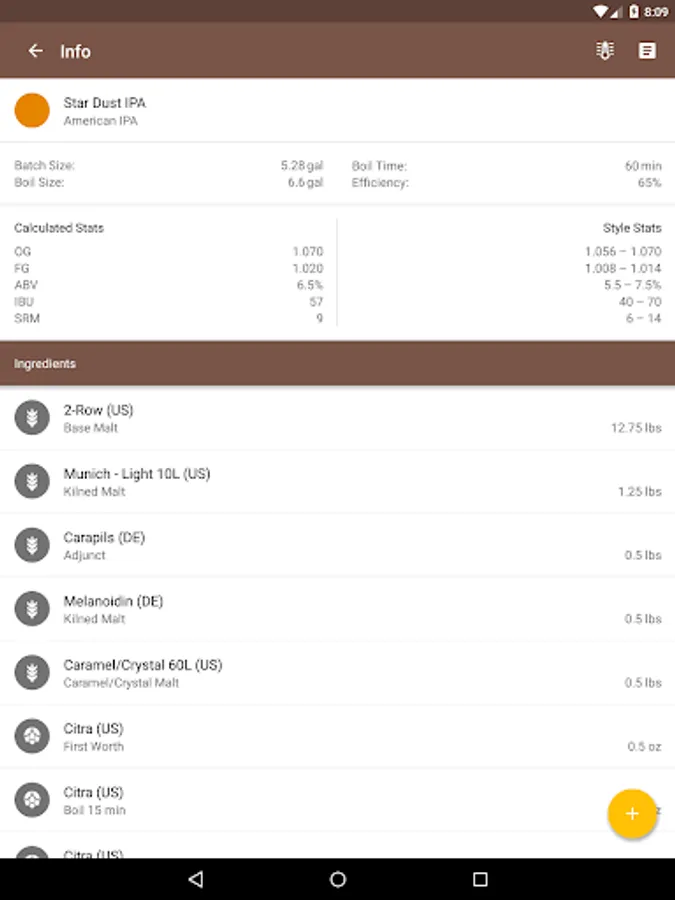 With SimpleBrew you can easy create and manage your homebrew beer recipes. Edit brew stats including mash efficiency and brew volumes. Add and customize beer ingredients from a list of available malts, hops, and yeast strains. Easy calculate brew stats like OG, IBU, and SRM and compare your recipe against BJCP beer style guidelines. All of this made in Material Design.