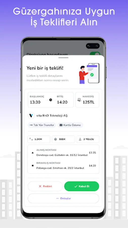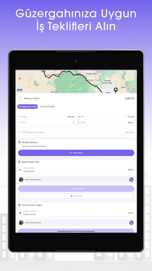 You can receive your corporate or individual job offers within your field of activity on a single platform, view your daily work plan and spend your free hours with transportation companies, tour and tourism companies, agencies, hospitals, health centers, hotels, etc. You can share with