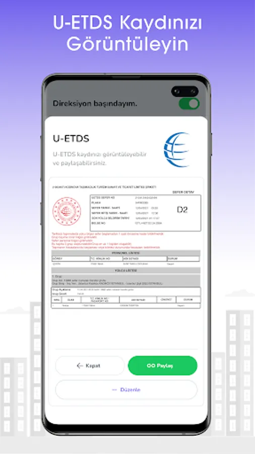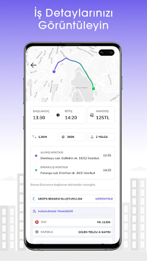 You can view all business details, view the estimated arrival and end time according to traffic density, and share your location with your passengers as a link, making it easier for you to meet. You can view flight departure/landing times and delay information, and share information with passengers or staff for airport pick-up.