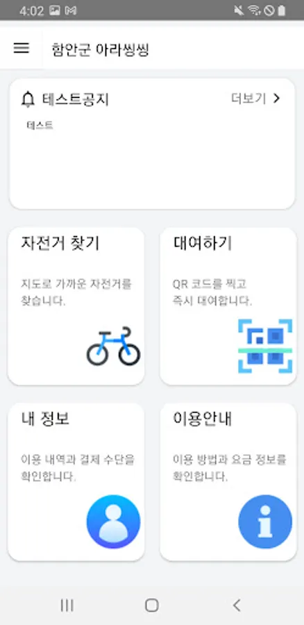 It can only be used within Haman-gun, and it supports the function of finding nearby bicycles, greatly reducing the time spent on bicycle rental.