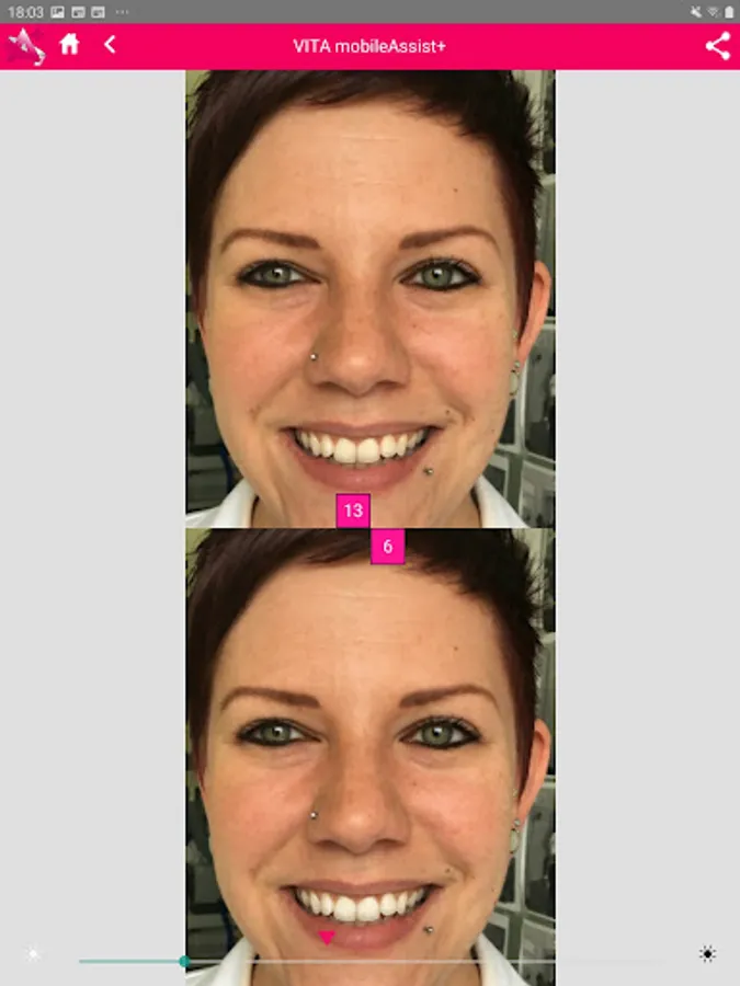 VITA mobileAssist+ was developed for Easyshade units with integrated Bleaching Mode (from serial number H58600). It enables simulation of the bleaching treatment and allows comparison between the initial situation and the simulated result.