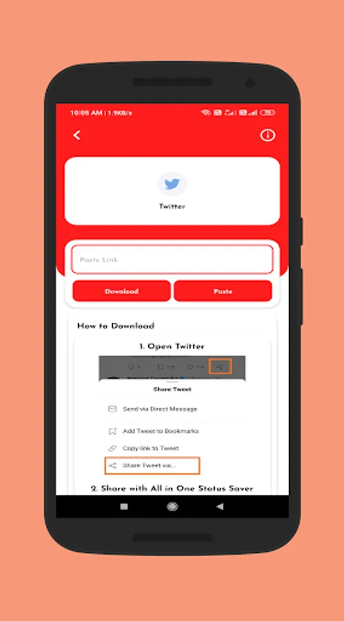 Status saver allows you download/save every status in your mobile app. Save images status, Video Status from your favorite apps like WhatsApp, Instagram, Facebook, Tiktok, Twitter. Status saver allows you to download all status in one single click.