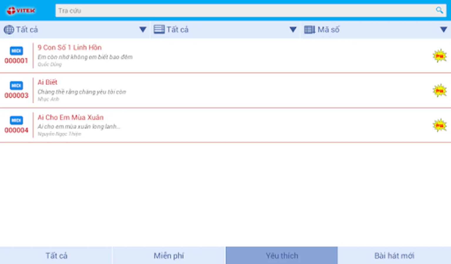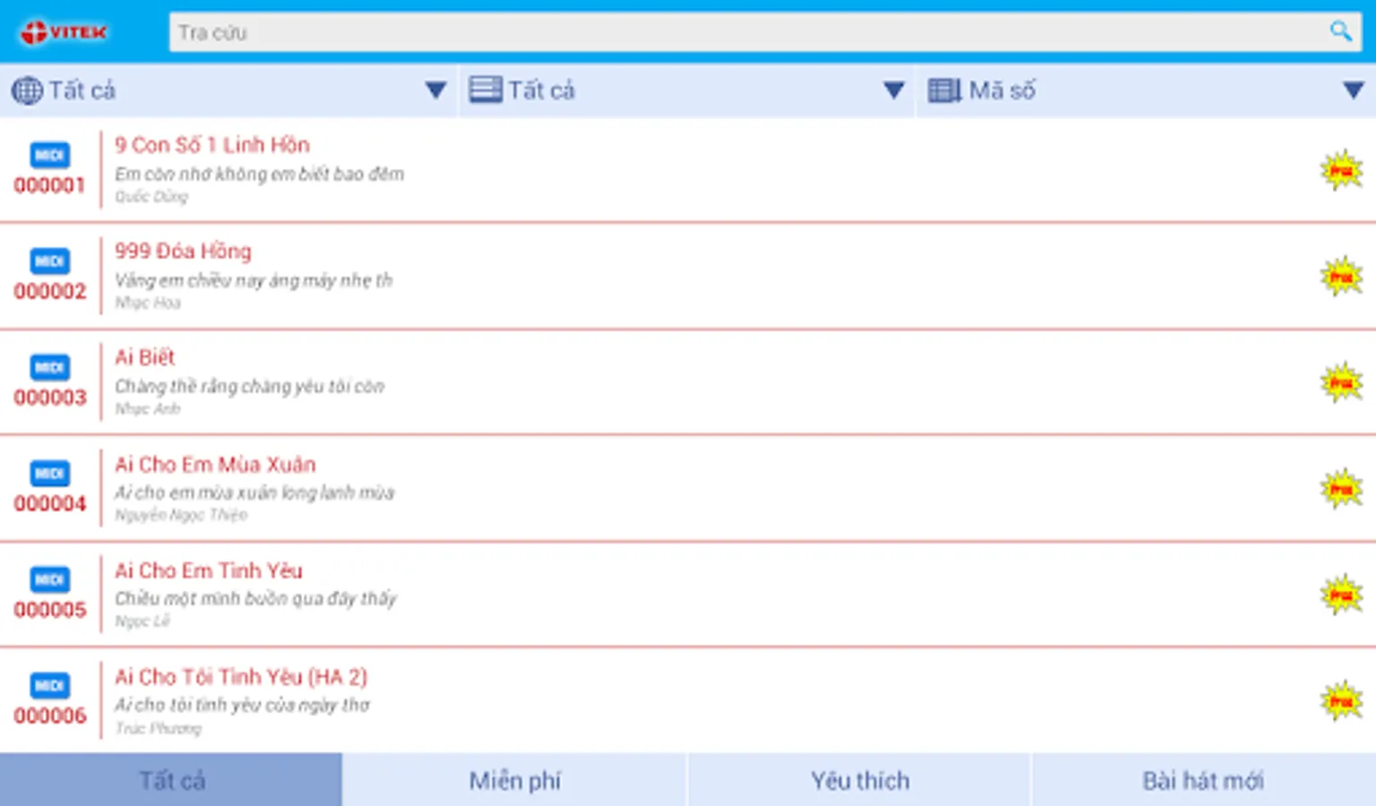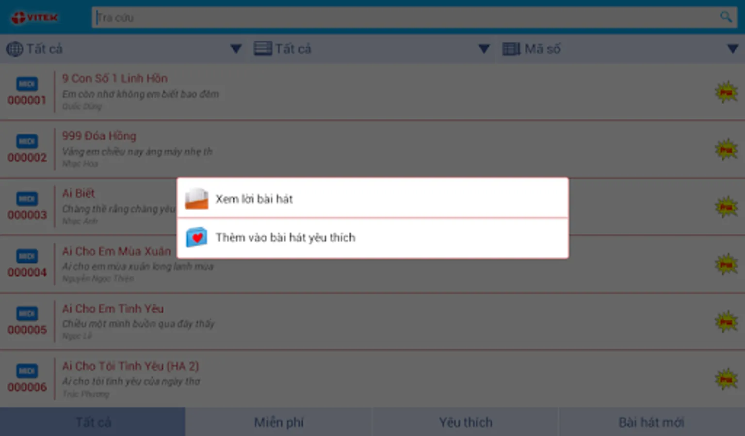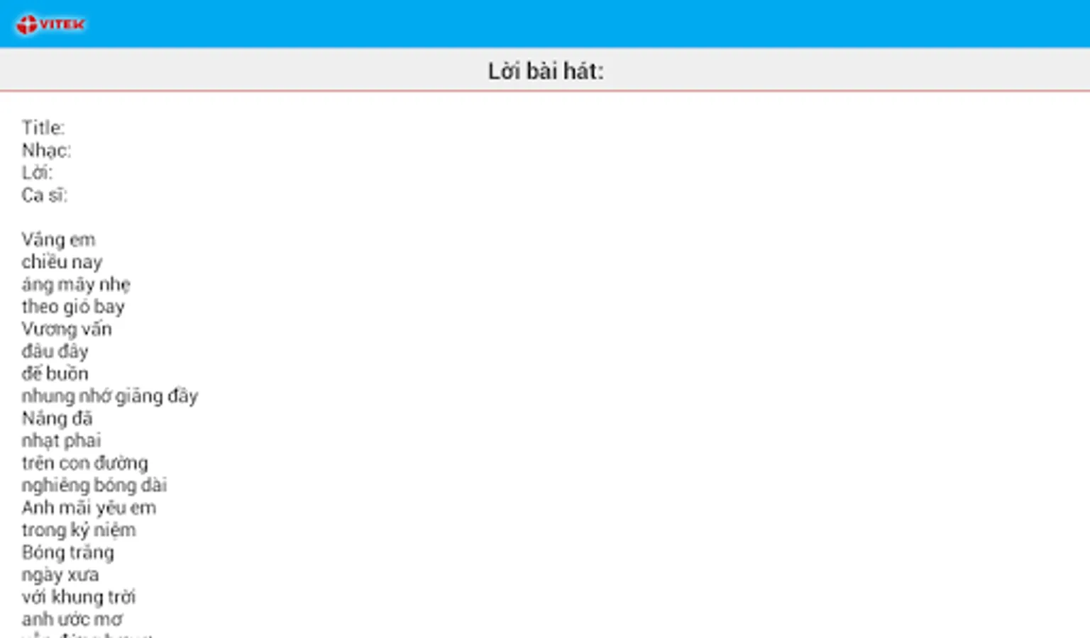 Vitek List is a free application to help you quickly lookup Karaoke song Vitek.