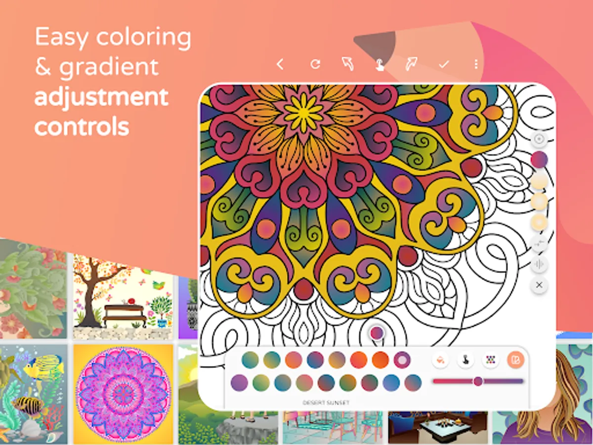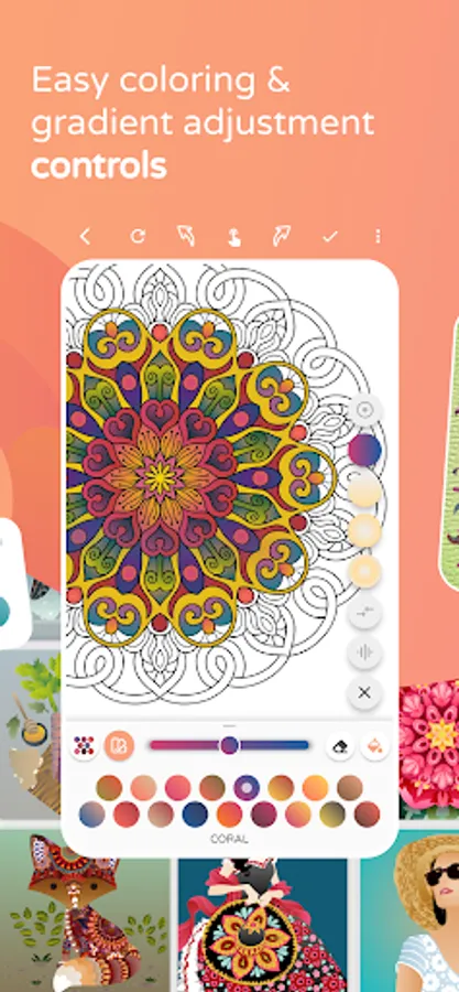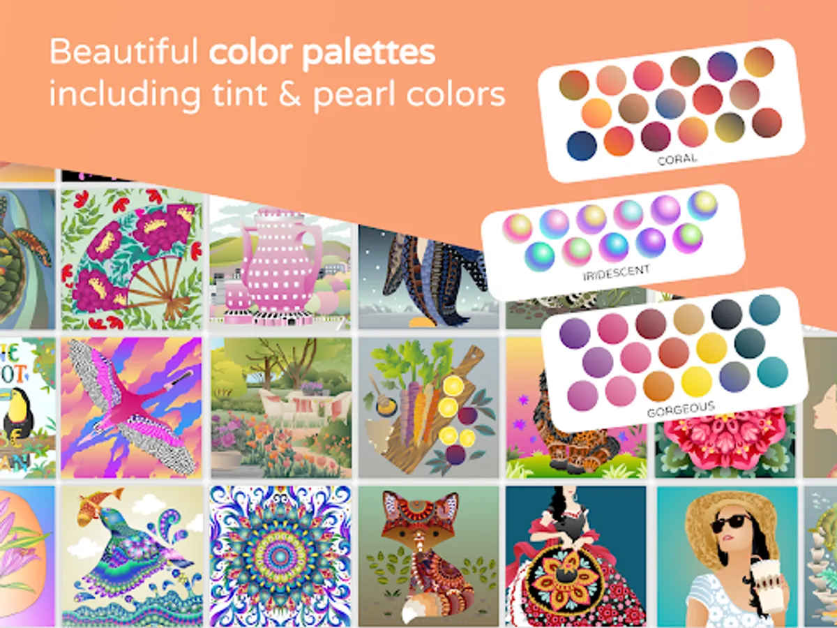 Just tap to color and pinch to zoom in and out on the coloring pages. Re-pick colors: long press the color you want to reuse.