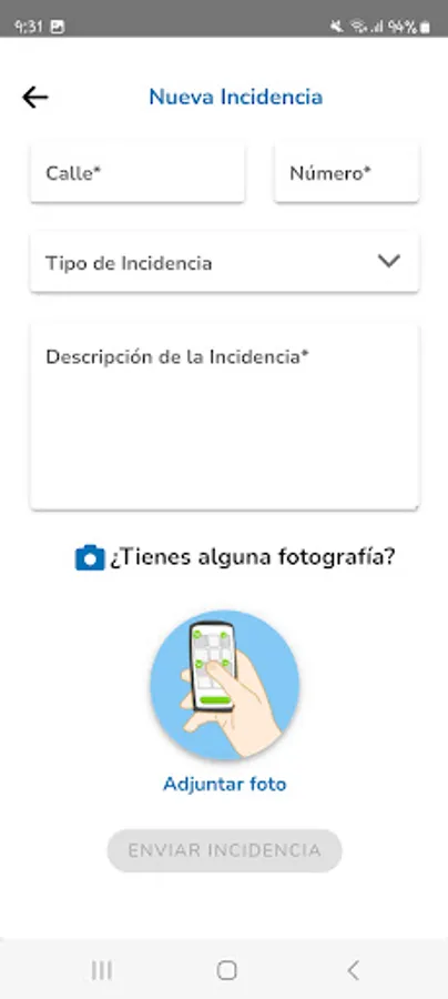 To report the incidence and the name of the street and a short explanatory text, you can attach a photograph taken from the smartphone. The application also send GPS coordinates at the time of taking the picture so that technicians EMULSA better position to know the location of the problem that the citizen wants to report.