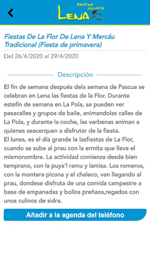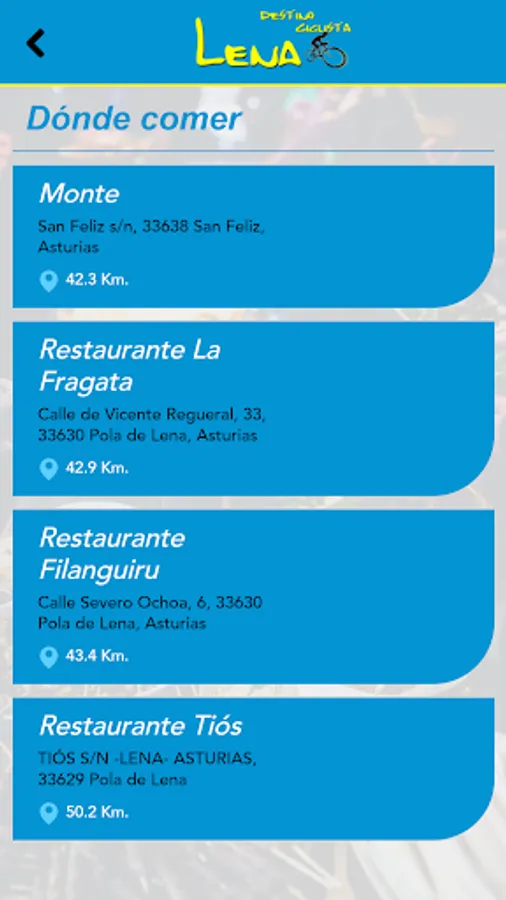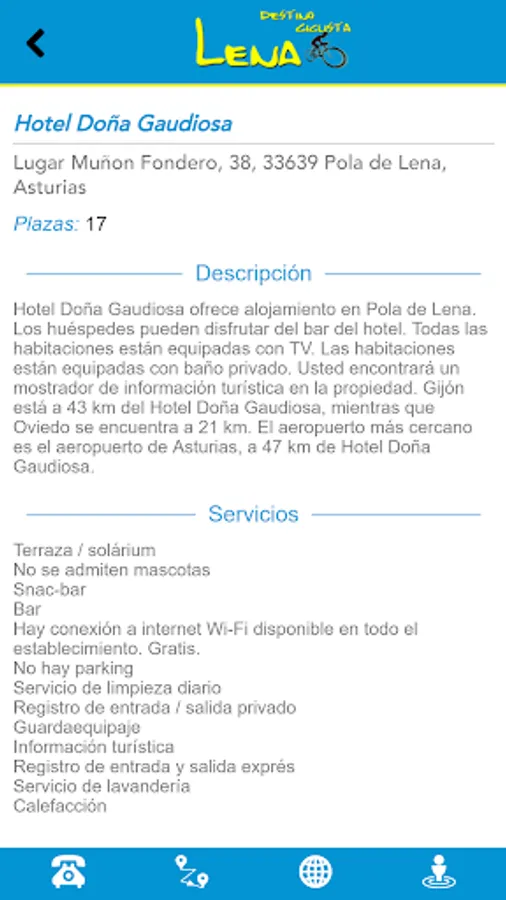 Discover through this application the main tourist resources and claims of the Lena council. The App offers complete information on cycling routes that can be carried out by the council (description, orography, estimated duration, indications for carrying it out, etc.). It also has a complete guide on restaurants, hotels, hostels, shops, services of interest or areas to visit, all geolocated so that you can have the best possible experience within Lena.