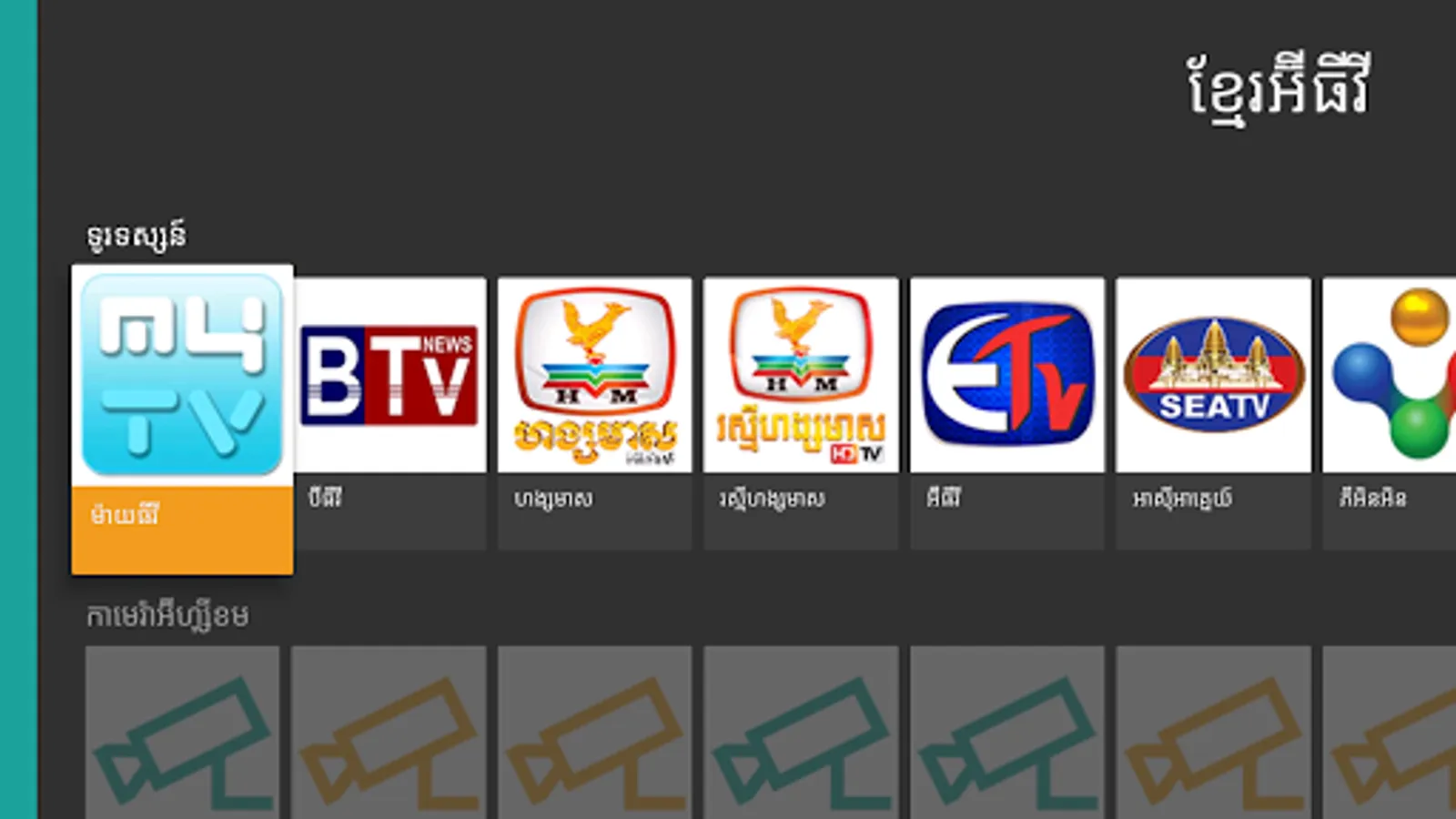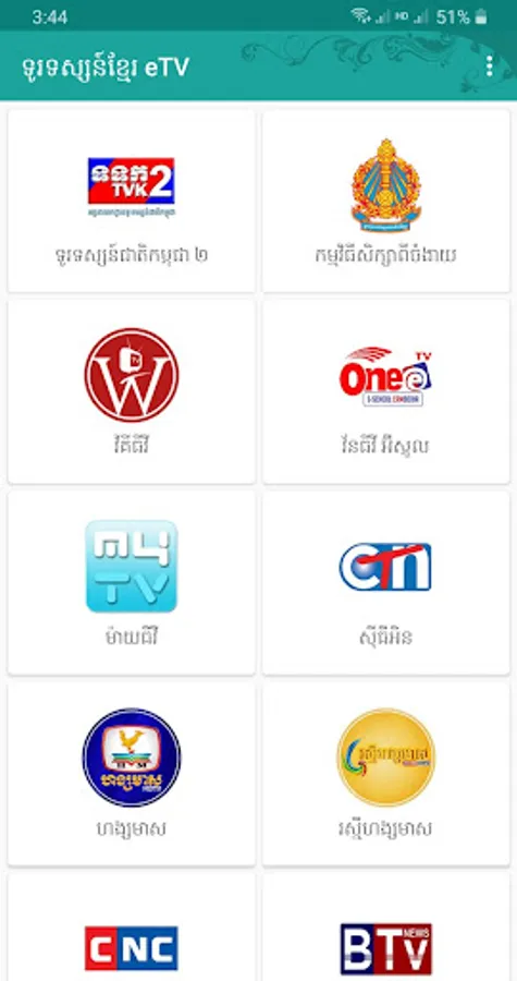 Khmer eTV bring you all your favorite TVs in Cambodia to your smart phone and tablet.