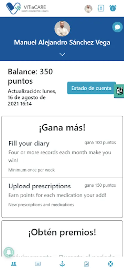 Knowing your needs we help you take care of your health with exercises, nutrition tips, reminders of your medications and we reward you for doing it!