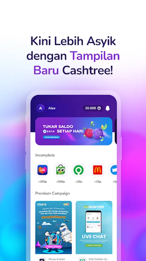 Pada pembaruan terbaru, Cashtree menyajikan perubahan desain antarmuka dan pengalaman pengguna yang lebih segar dan menarik. Kami juga menambahkan fitur-fitur menarik seperti Flash Sale, Cashtree Quiz, dan lainnya untuk meningkatkan pengalaman Anda.