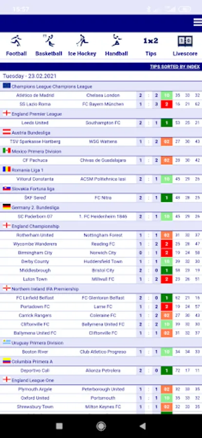On our app you will find the following football, basketball, handball and hockey statistics for more. Results, tables, live scores, predictions.