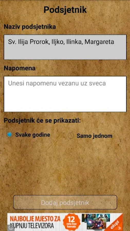 * dodavanje personalizirane napomene prilikom dodavanja podsjetnika