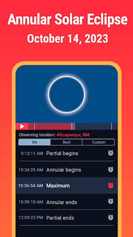 With eclipse timer from Eclipse Guide app you will receive push notifications for these astronomy events in time.