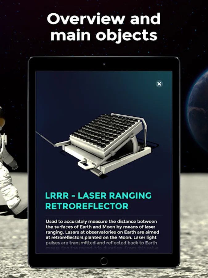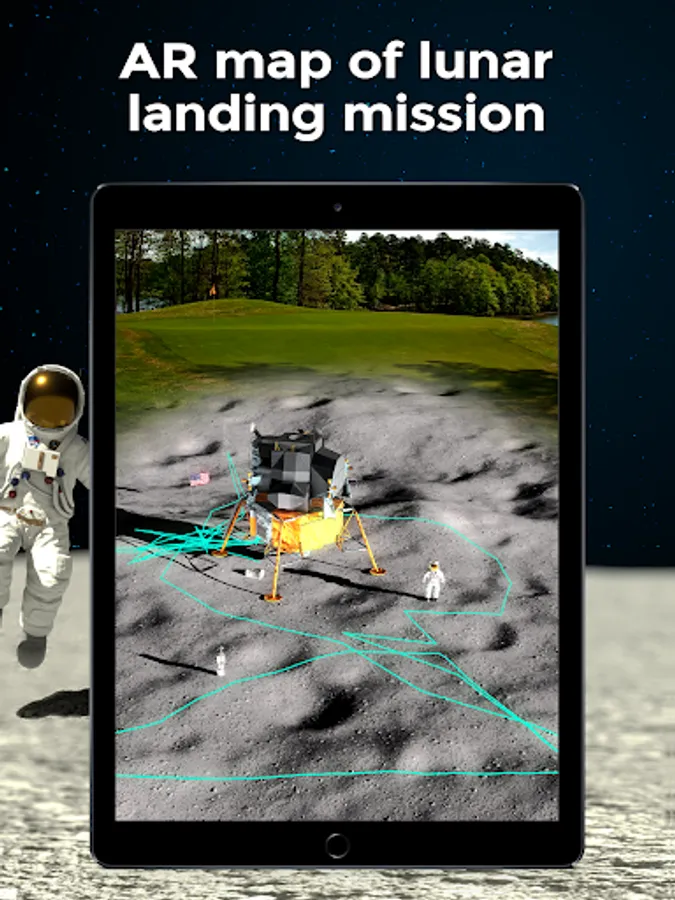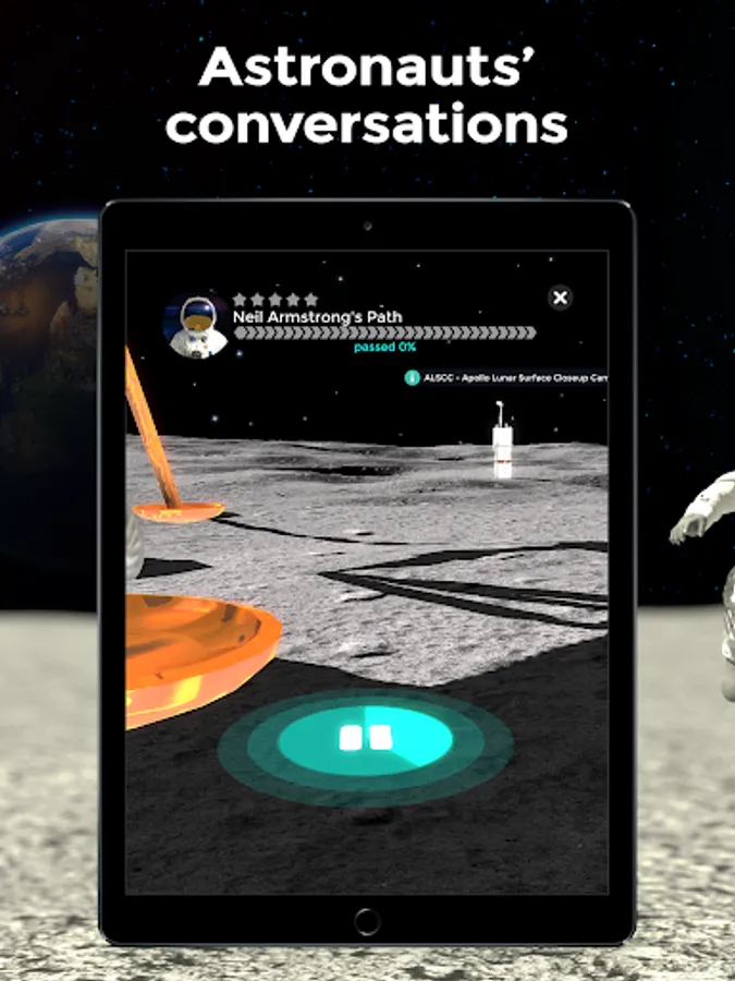 The path of Neil Armstrong, his directions, objects on the lunar surface, the required time, astronauts’ s conversations and all the details in the app are authentic and completely imitate NASA's historic Apollo 11 moon mission of July 20, 1969.