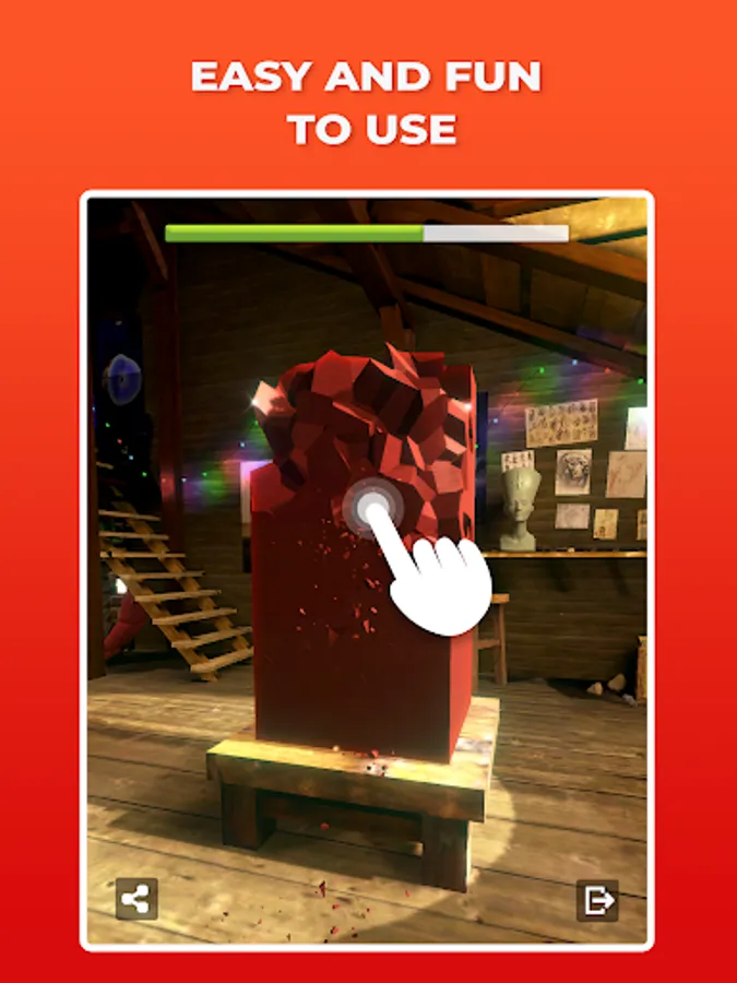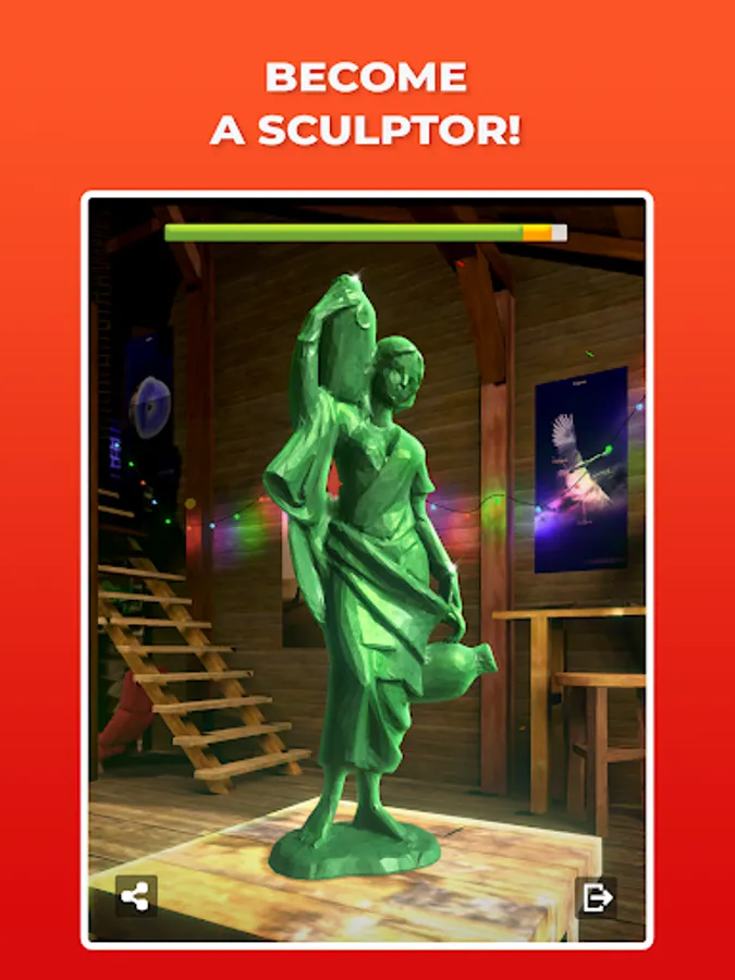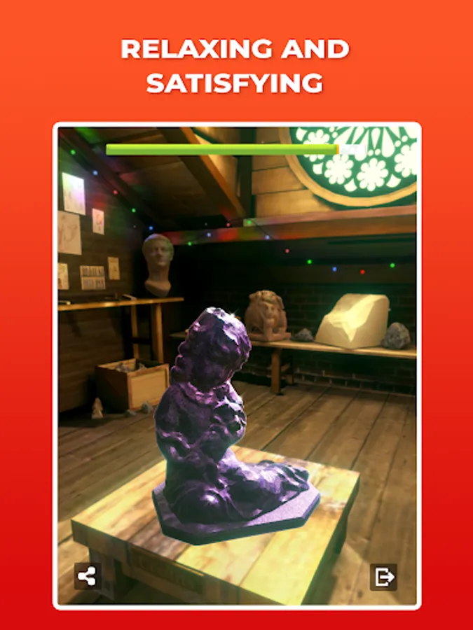 Tap the block to knock off portions of stone. Zoom in and out, rotate and carve the sculpture from different sides. Work at a speed that is comfortable for you. There are no limitations in time and the number of taps in this simple game. Relax and enjoy your time making cute 3D sculptures. Sculpting is easy! Once a sculpture is ready, you can share your creation with friends.