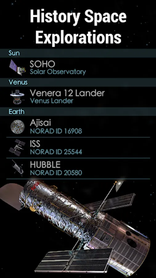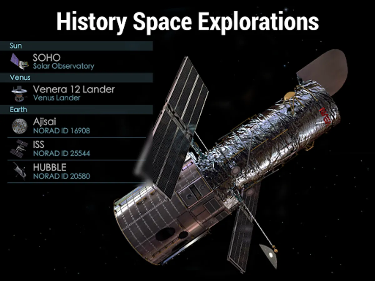 With Solar Walk 2 you can study celestial event calendar, learn about significant events in the history of space exploration, read interesting astronomy facts, explore Solar system planets in real time, observe 3D models of spacecraft, and even keep track of them in real action.