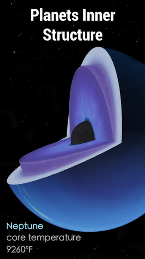 Planetarium 3D app provides general and detailed info about Solar system planets and moons, satellites, dwarfs, asteroids and stars. Learn the internal structure of any celestial body, the average distance from the sun, explore planets positions, mass, density, orbital velocity, visit the gallery of space photos, find interesting astronomy facts.