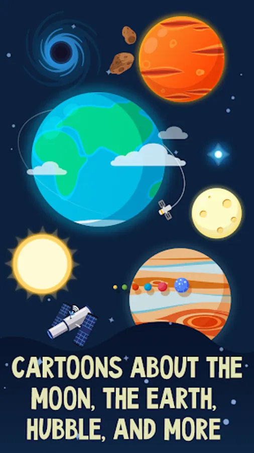 ⭐️ With this amazing app little space lovers will learn planets, see the Hubble Space Telescope, find out interesting facts, learn how to determine the cardinal directions with the Polar Star and much more.