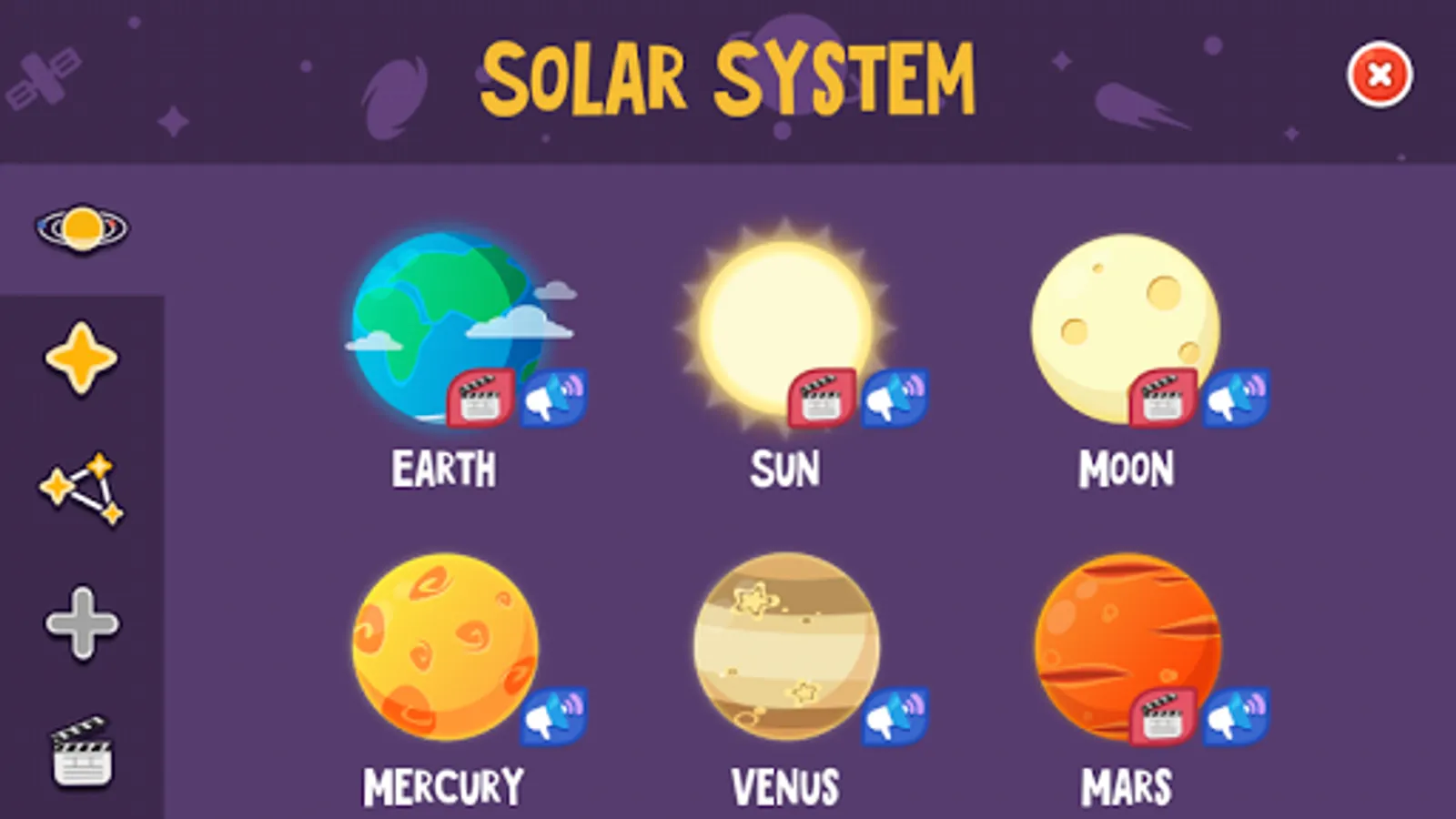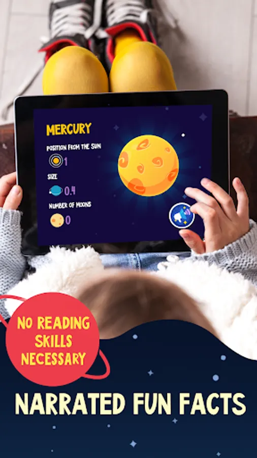 ⭐️ Kids will be able to explore space, find different celestial bodies following a special pointer and learn a lot of new just by tapping the screen. For example, listen to the interesting facts.
