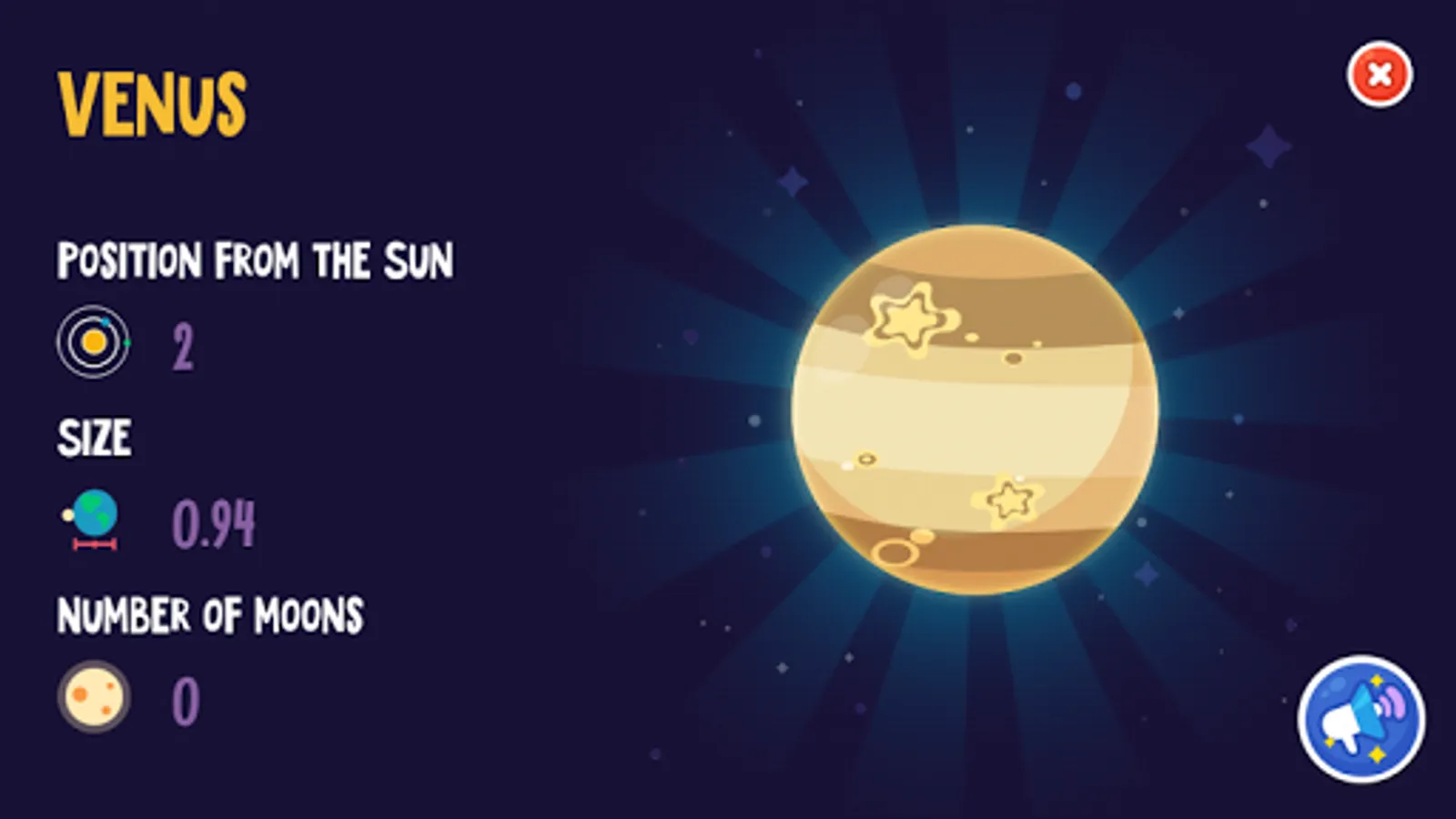 ⭐️ Encyclopedia of the solar system for kids allows them to take a quiz to check the knowledge acquired during playing with this educational game. It is very short and inspiring and shows how much the child learned.