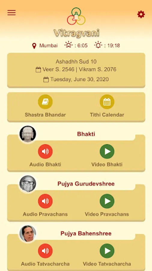 - Audio & Video Bhakti: contains scripture verses (Gathas), poems, bhaktis & bhajans written by various revered Aacharyas & Enlightened Souls. These bhaktis are sung by Pu. Gurudevshree, Pu. Bahenshree & various professional artists.
