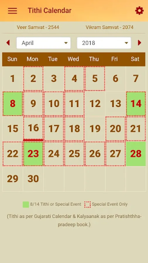 -Hindi & Gujarati Digamber Jain Calendar: This calendar informs users about the Date, Tithi, Religious significance of the day (Festival), Sunrise and Sunset Timings for various locations & so on. Additionally, this app also gives detailed information on various religious festivals via www.vitragvani.com website link. The calendar also boasts an archive up to 2011