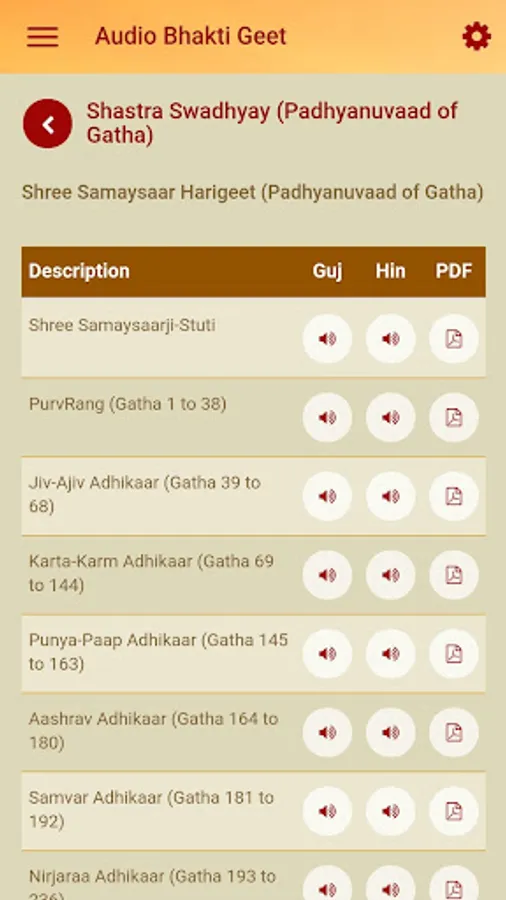 - Pu. Gurudevshree's Audio & Video Lectures: Pu. Gurudevshree gave discourses for 45 years in Songadh; based on the Scriptures written by Digamber Jain Saints and Scholars. This App offers a unique searchable database of 9259 available lectures