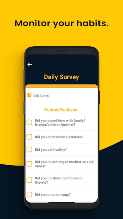 • Survey to track your daily activities, where you can earn points to feature in the leaderboard.