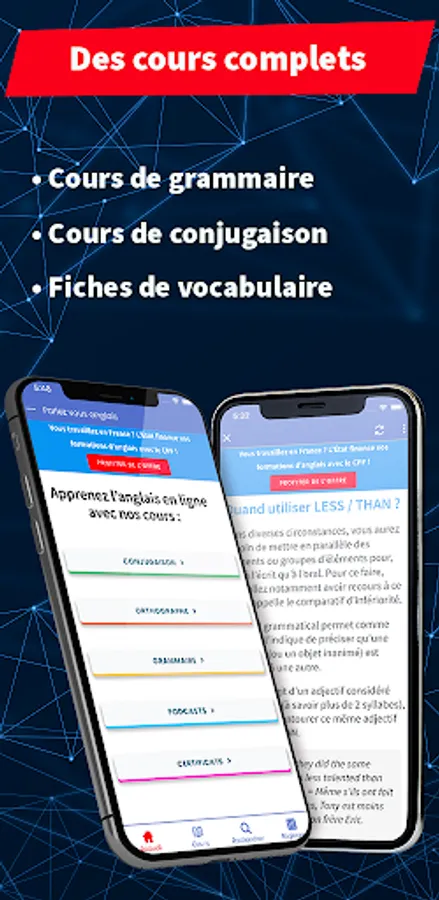 The best app to learn English for FREE! Progress quickly thanks to our courses, our grammar, conjugation and vocabulary sheets.
