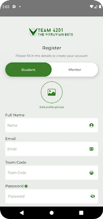 The Vitruvian Hub will serve as the students one stop location for taking care of official registration with the team, submitting your time, turning anything in, checking how you're doing for competition eligibility, and so much more. Those students that are admitted to the team will receive a team code to be able to register for an account on Vitruvian Hub. Mentors will also be required to create an account on Vitruvian Hub as well and are welcome to log their hours they volunteer with the team if they so choose.
