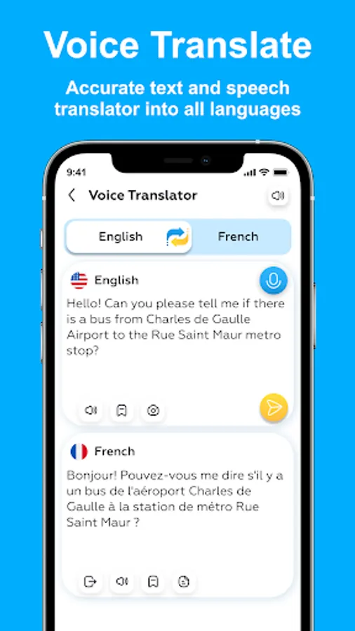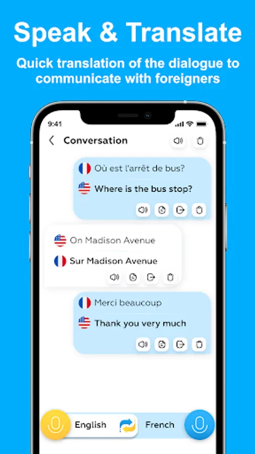 When you start a conversation with a foreigner, you won't need the help of a human interpreter. The speak and translate app will perfectly replace this professional. Chat mode conversation is great for dialogue on any topic: from weather to touristic itineraries, from shopping to data science.