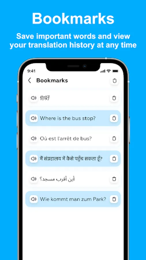You can add a word or a text to bookmarks. At any moment, you'll be able to come back to your history and review the valuable information. It's a great function for those who want to learn foreign words and phrases.