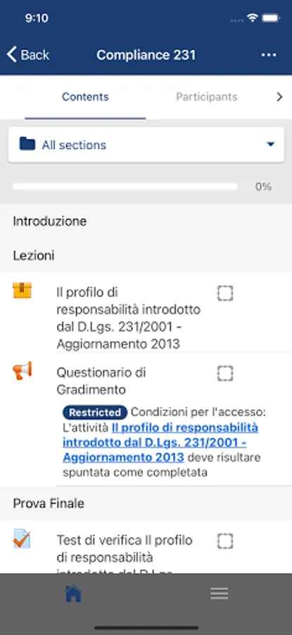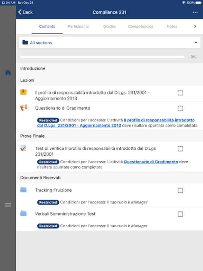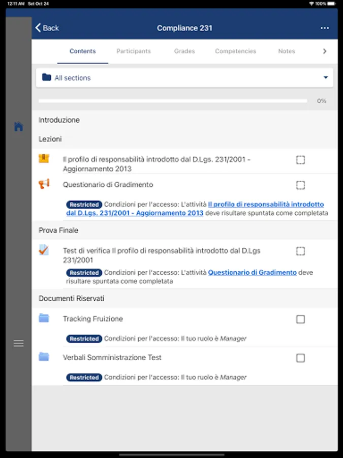 o Use the courses made available on the network even in the absence of a connection through the possibility of downloading the content on your device