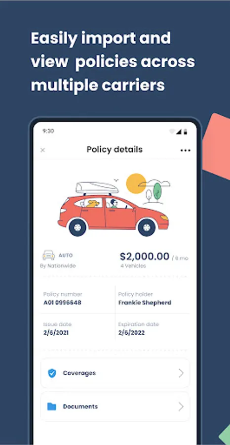 - Easily import your existing personal insurance policies