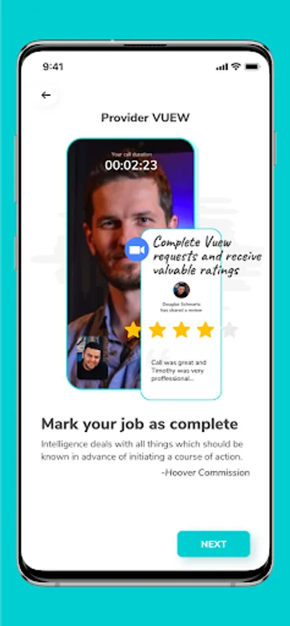 Connect face to face with an expert services provider through video on your iPhone. Instead of spending countless hours researching businesses, Vuew will connect you instantly with vetted professionals who are ready to provide all the help you need over a short video call.