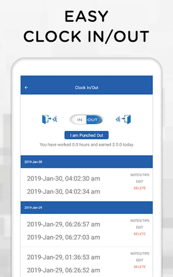TimePunch Plus is built for business. It is the perfect work hours tracker with time clock. A work time tracker & employee hours keeper - the app logs work schedule with weekly timesheets, clock in time, clock out time, sick days, vacations, & cash advances.