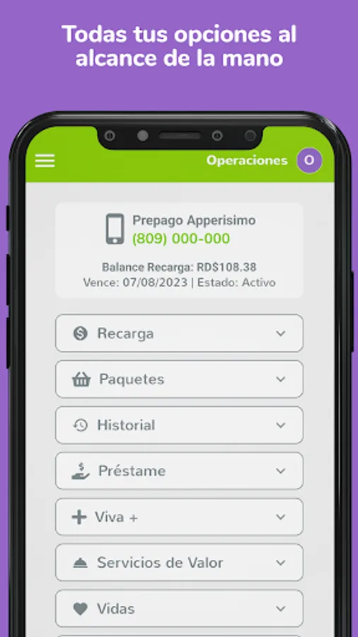 • Request for Prepaid services: Pass Balance, Devuélveme, Internet and SOS Minute.