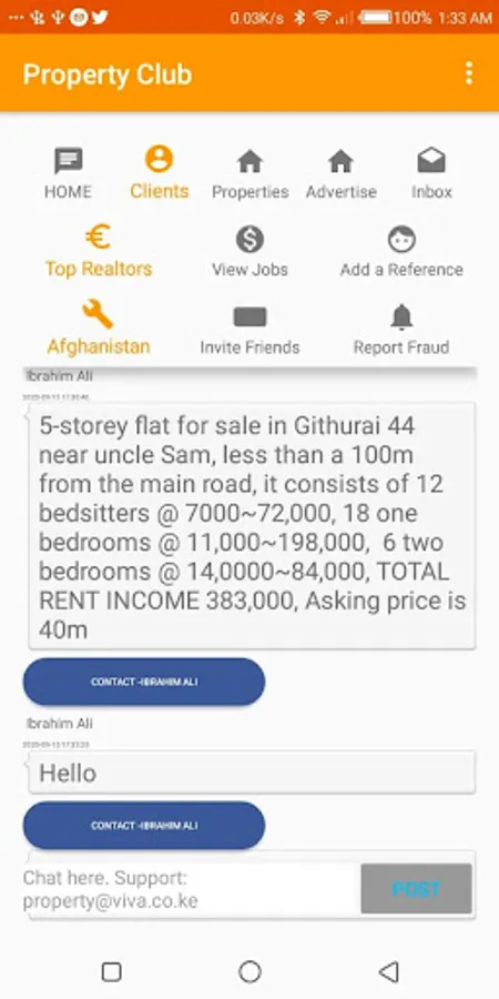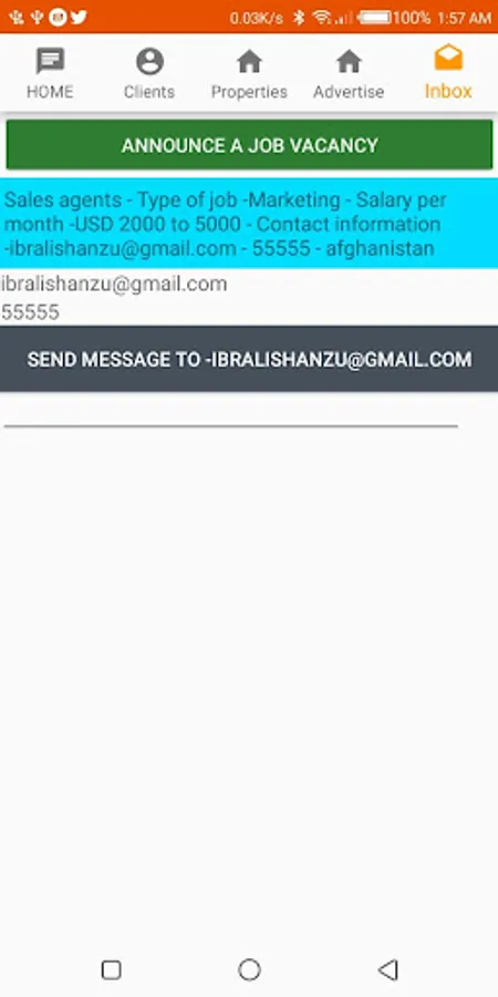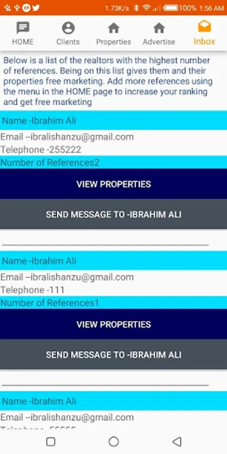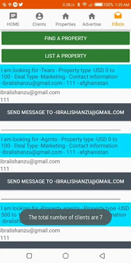 Under the My Properties section of the app, you can list your properties. Once you list them, an option titled CLIENTS appears. Clicking this matches your property to client inquiries over the last few days that are relevant to your properties.