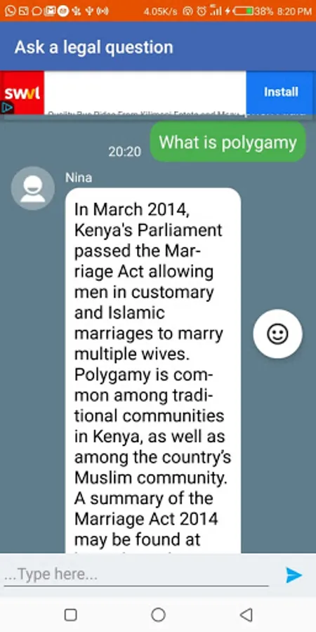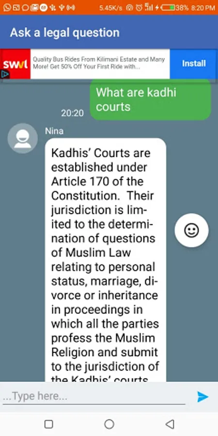 Lawyers near me brings legal advice to your phone. Ask our app any legal question and it will provide relevant legal advice within a few seconds. If the app cannot answer you immediately, check on it after one day to see whether it has found the answer. Legal advice is very expensive, and quality legal advice is hard to come by. Our seasoned professionals are putting together the most comprehensive legal solution to be able to provide you with free and high quality legal advice. This advice can be used to solve every day problems, help students in the law studies and even experienced lawyers in their practice.