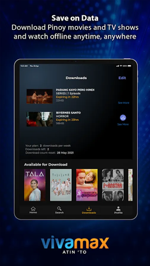 3. Save your data. Download Pinoy titles on your device and watch them offline anytime, anywhere.