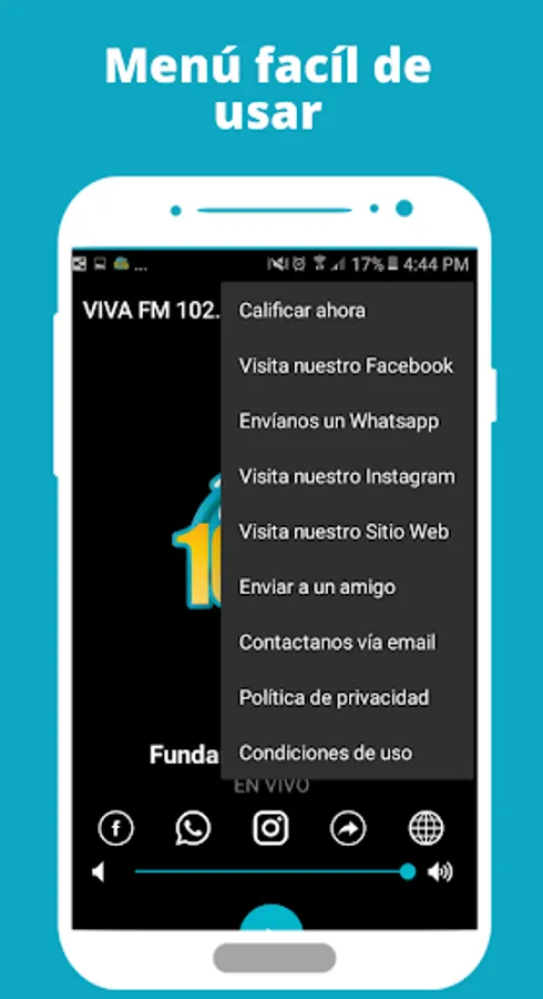 Our Radio Viva Juárez application has a very nice design and a very easy-to-use menu. It also has a shutdown timer with which you can program the time in which the radio turns off.