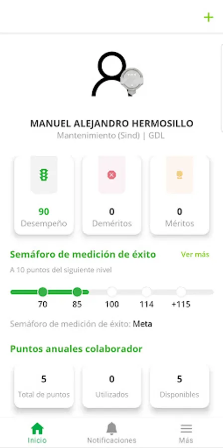 The company supervisors may establish employees "MERITS" (good actions) and/or "DEMERITS" (bad actions), as the case may be, these actions will have a score, the sum and/or subtraction of these actions They will be positioned in one of the 5 levels that they have, in addition, according to the time that the collaborator has in relation to his score, he will be creditor to a "Loyalty Status". In addition, each collaborator will have a predetermined number of points to distribute with their colleagues and it will be called "Application for recognition".