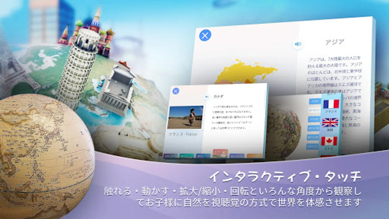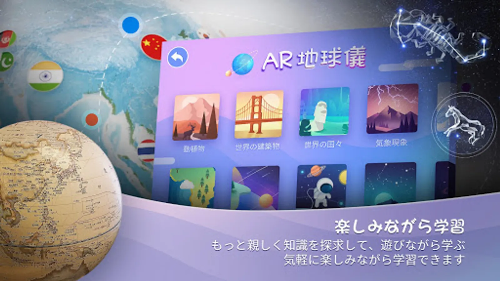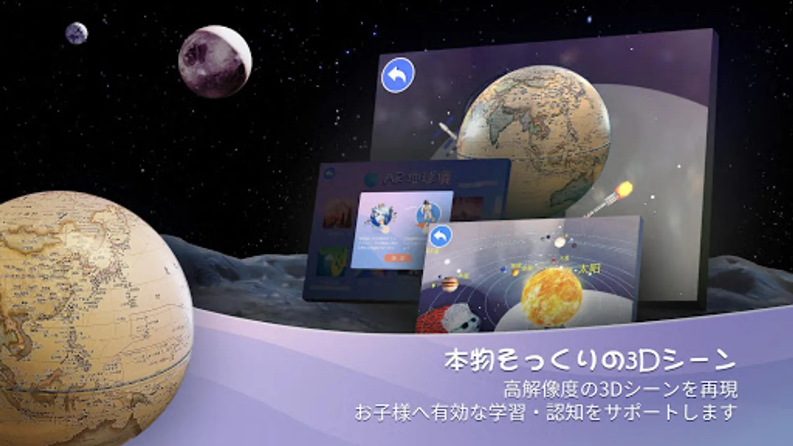 AR (augmented reality) by combining the technology and globe model, we have the video and the sound was realistic 3D three-dimensional model, lively. Use a wide variety of information, and provides to learn a wealth of knowledge through a completely new experience and play to children.