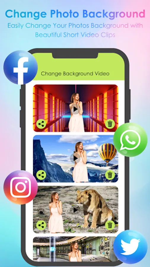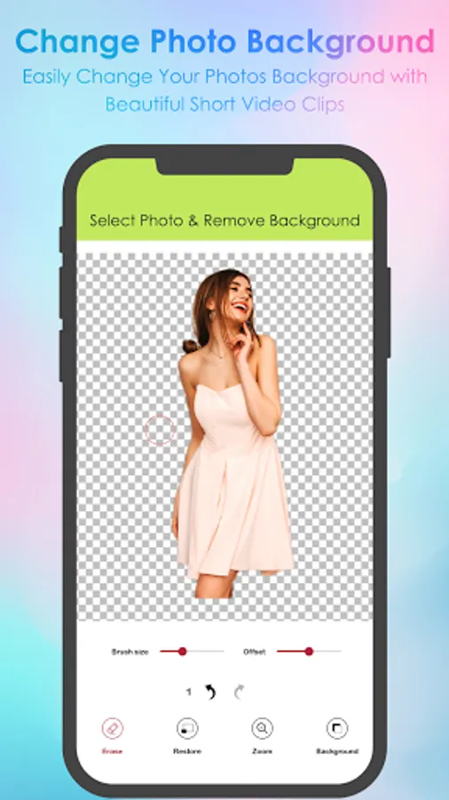 Change Photo Background App Allows you to remove any potion of your image. It Support good collection of Background Video themes.