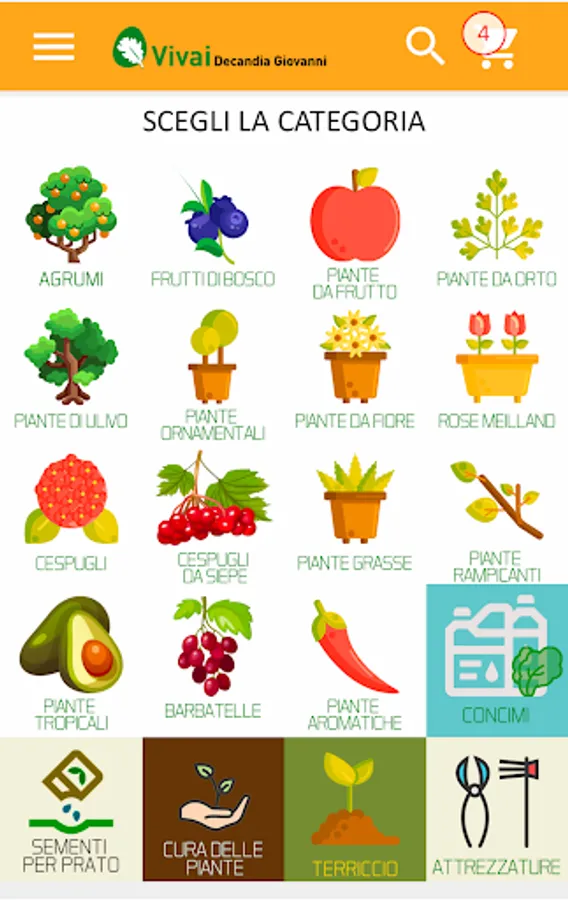 Vivai Decandia sells fertilizer products, plant care, soil, and garden equipment. The best brands BARENBRUG, FERRI LUIGI SEMENTI, FERTIL, LINFA, TERFLOR, VERDEMAX.