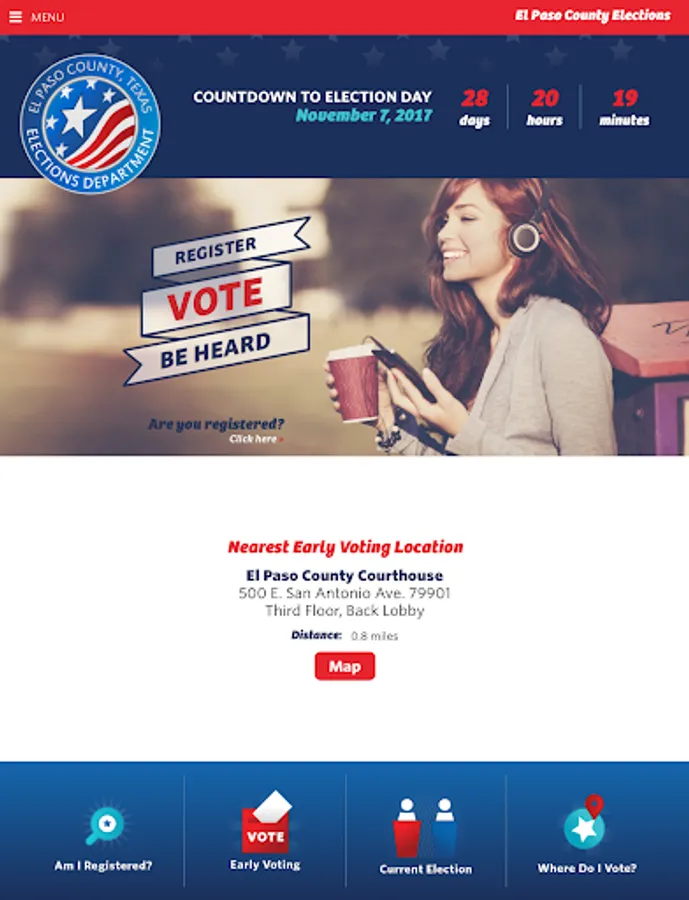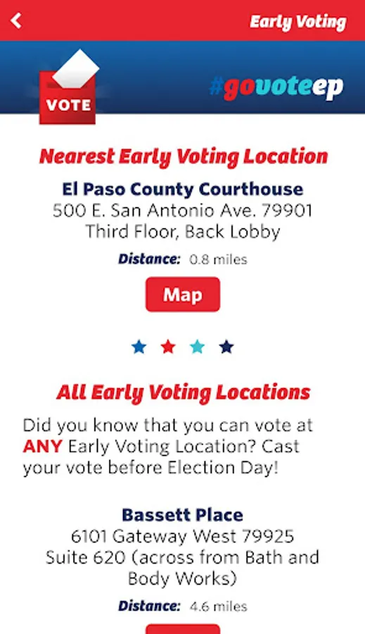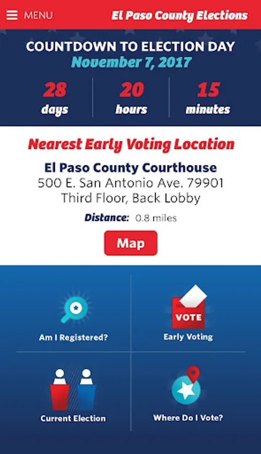 The El Paso County Elections Department app is the essential app for voters in the El Paso, Texas region. See if you are registered to vote, find your nearest early voting location, lookup your precinct voting location, and get all of the information you need to prepare for election day!