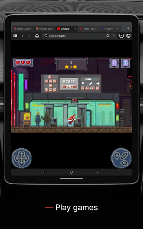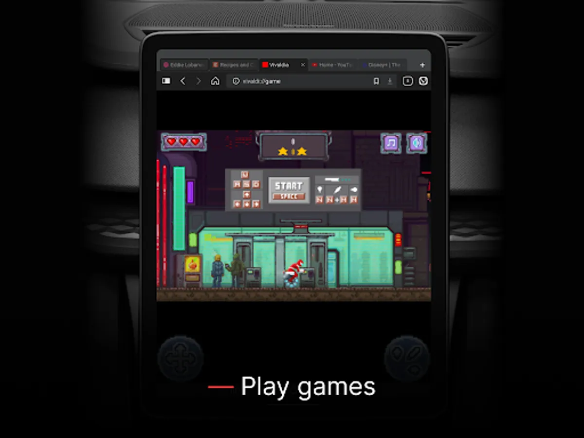 Vivaldia is a real 80s-style arcade runner game built into the Vivaldi browser. Play it both online and offline on your mobile and desktop. Includes gamepad support.