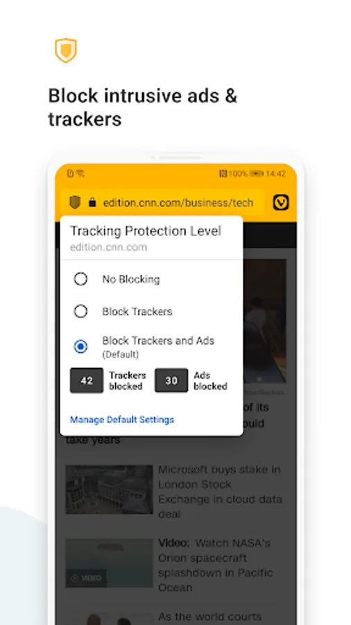 Popups and ads are among the most annoying things about browsing the Internet. Now you can get rid of them in a few clicks. A built-in Ad Blocker blocks privacy-invading ads and stops trackers from following you around the web - no extensions needed. P.S. Ad Blocker and pop-up blockers also make your browsing experience faster and safer.