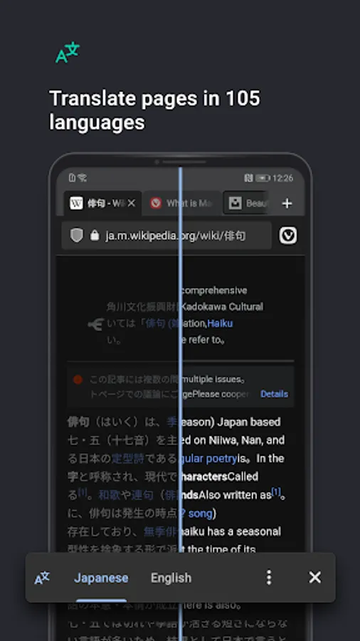 - Get private translations of websites using Vivaldi Translate (powered by Lingvanex).