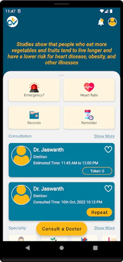 Introducing Doctor-V, the innovative video consultation app now available for Android. With Doctor-V, residents of Bangalore can have a virtual doctor visit from the comfort of their own home. Our app features a user-friendly interface that allows you to easily connect with our team of specialist doctors for expert medical advice and do a video consultation with the Doctors . Whether you need a routine check-up, have a specific medical concern, or require emergency medical assistance, our app has you covered.